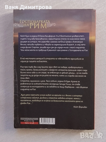 „Куин умело преплита личния живот на героите си с велики и шокиращи исторически събития. Дълбока и страстна любовна история, нежна и трогателна, развиваща се на фона на безмилостно жестоката арена на Древен Рим...."