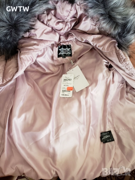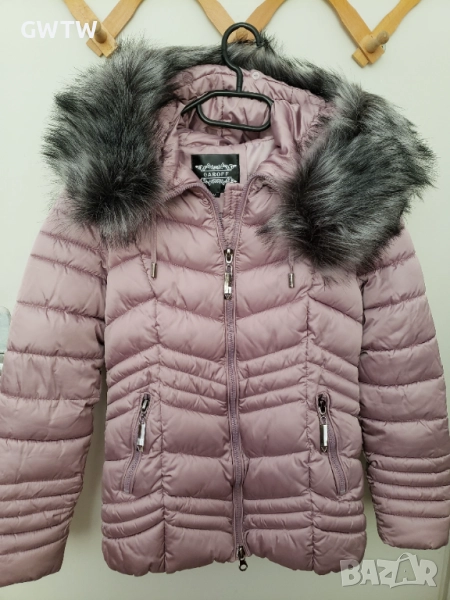 Garoff зимно яке, много нежен розов цвят. Невероятно качество. Коланът е подвижен. Пухът на качулката може да се сваля. Отговаря на С размер.