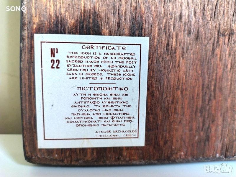 • ПИСТОПОИИТИКО (СЕРТИФИКАТ): Тази икона е ръчно изработена и е копие на автентична икона. Темите на нашата колекция са взети от манастири и музеи. Изработена е ръчно (парче по парче) и е с ограничено производство.