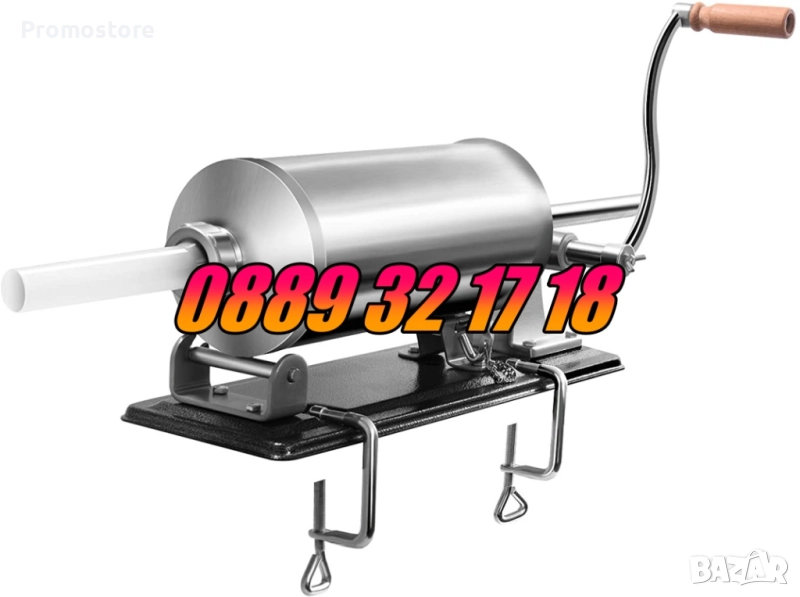 Пълначка за кайма, суджук, наденица, наденички и месо 4 литра. Пълначка от неръждаема стомана с 4 размера фунии. Механизма е изцяло метален, което прави продукта изключително здрав. За по-голямо удобство, пълначката е закрепена на допълнителна плоскост, а също така е оборудвана и със скоби за прихващане към маса или друг плот.