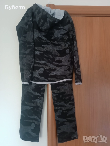 Ватиран екип с качулка nike. Размери на долнището: дължина 100 см, обиколка наталията 80 см, обиколка на ханша 108 см; размери на горнището: дължина 62 см, гръдна обиколка 94 см, реглан ръкав -дължина от врата 65 см. Използвам малко, размерът е за тинейджър 12 - 13 години.