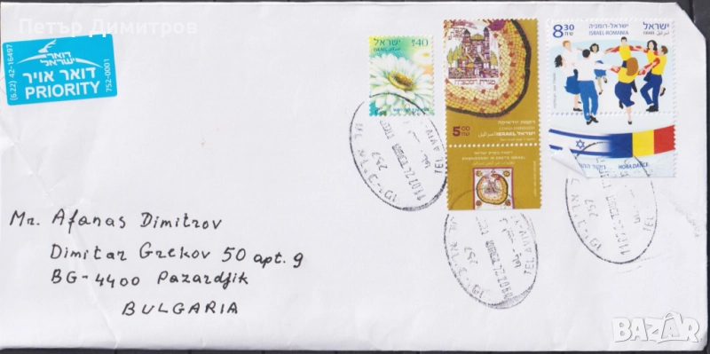 Пътувал плик с марки Бродерия Танци съвместно издание с Румъния 2024 от Израел.