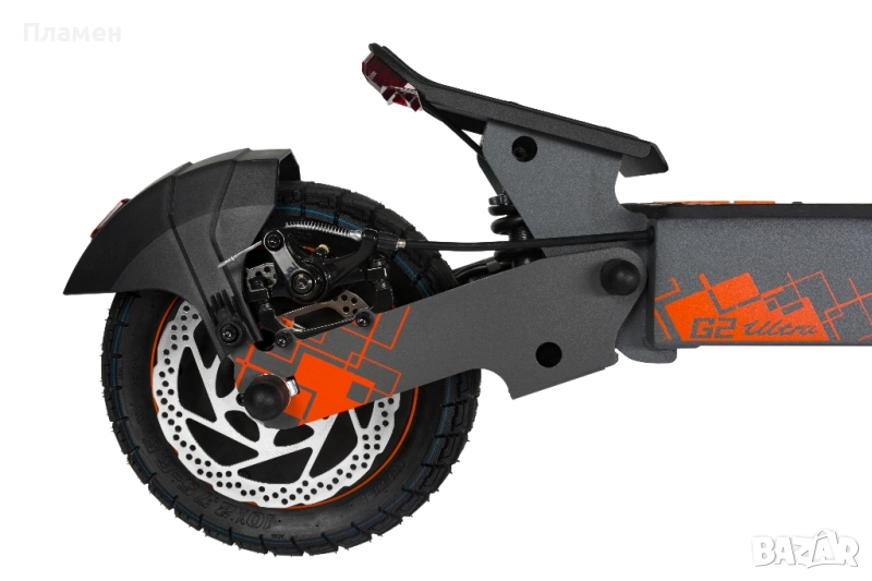 Скутерът осигурява мощна производителност с два безчеткови двигателя с мощност 800 W (общо 1600 W, пикова 2000 W) и литиево-йонна батерия 48 V 18 Ah, предлагайки пробег до 55 км и скорост до 50 км/ч. За първи път виждаме вградени силни тон- колони в електрическа тротинетка. Спокойно може да се наслаждавате на музика докато карате своята тротинетка. Проектиран за стабилност, той разполага с 10-инчови безкамерни хибридни гуми и предно и задно пружинно окачване за плавно возене по разнообразен терен. Безопасността е гарантирана от 160 мм механични дискови спирачки, подкрепени от електронно спиране, плюс цялостна LED осветителна система с фарове, стоп светлини и мигачи. Скутерът е изработена от алуминий и стомана. С товароносимост 120 кг. и IPX4 защита, G2 Ultra е създаден за надеждна ежедневна употреба.