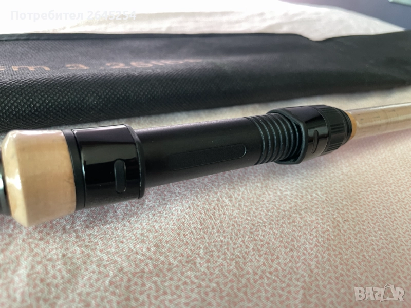 1. Изключително красива оплетка и дръжка, като няма друг бранд, който да знам да предлага тънка коркова дръжка (има карбонов елемент в края, на който се застопорява въдицата на butt rest на стойката).