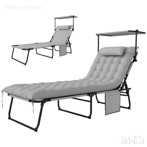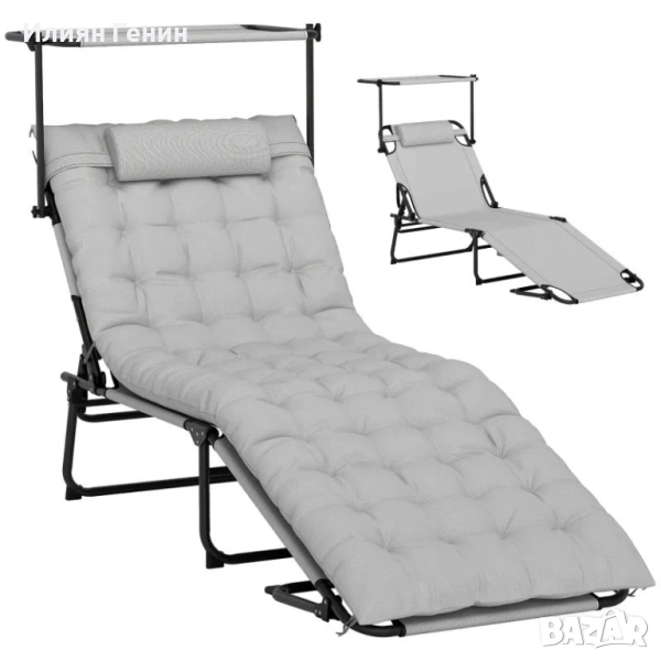 Сгъваем шезлонг Outsunny с матрак на покрива, шезлонг с регулируема в 4 посоки облегалка