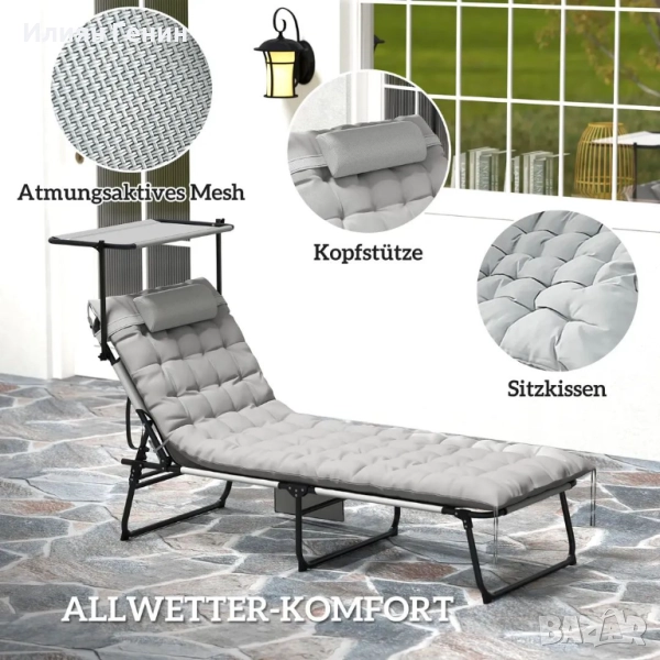 Сгъваем шезлонг Outsunny с матрак на покрива, шезлонг с регулируема в 4 посоки облегалка - 150.00лв.