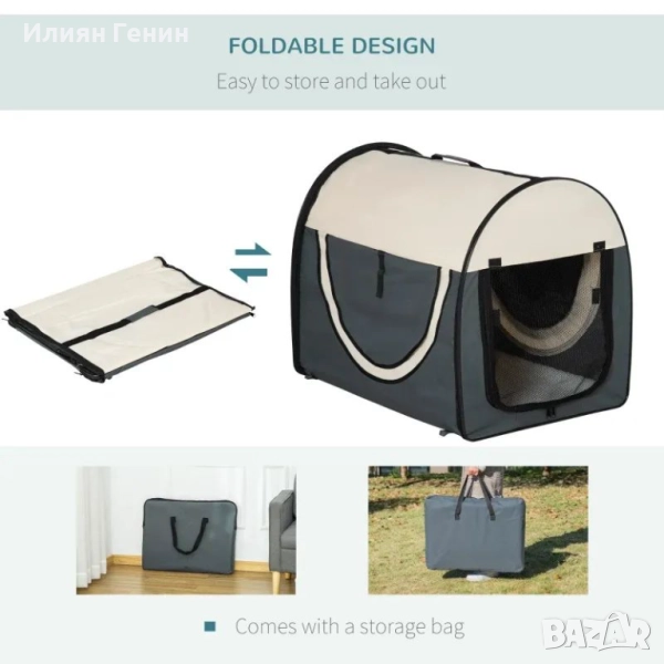 PawHut 70 см сгъваема чанта за домашни любимци, сива - 70.00лв.