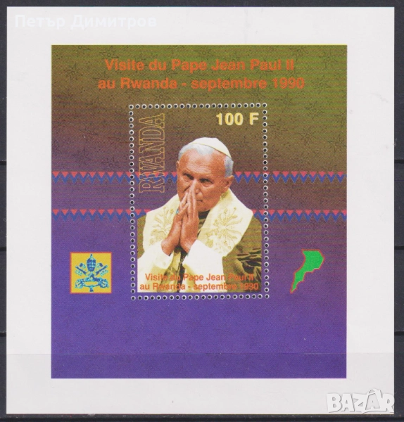 Чист блок Папа Йоан Павел II 1990 от Руанда.