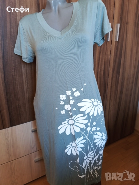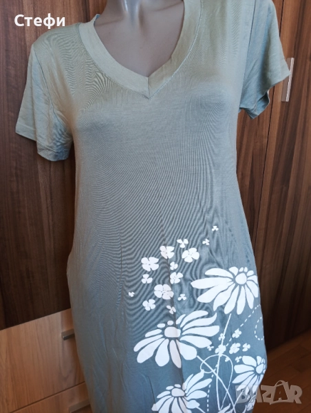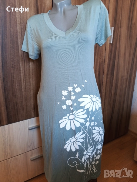 Дамски нощници в зелено и бежово . Модела е с джобове отстрани . И двете са номер L . Цена 9€ за брой. Лека и финна материя.