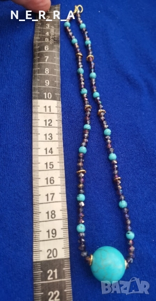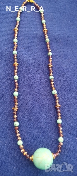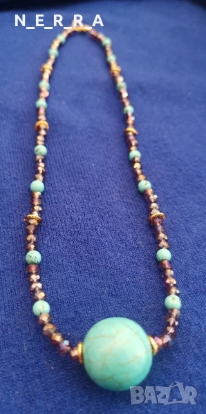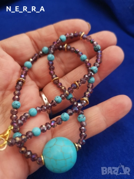 Колие от естествен тюркоаз и кристали → Обява 51793465