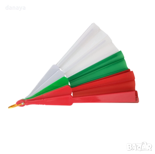 Ветрило с българското знаме – стилен аксесоар в цветовете бяло, зелено и червено. Подходящо е за национални празници, спортни събития, училищни тържества, патриотични поводи и тематични украси. Това ветрило с българския трибагреник е не само практично за разхлаждане през горещите дни, но и символ на българския дух.
