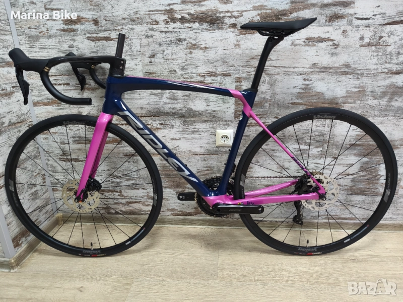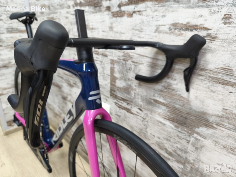 шосеен велосипед Ridley Fenix SLiC Disc, модел 2023 година, размер S, отговарящ почти на M, поради геометрията. Велосипедът е сглобяван по индивидуален проект, с отлично тегло за този клас монтаж, без да се прави компромис с нивото на представяне, с идея за пъргав и атрактивен велосипед, на достъпна цена. Oборудван e с пълен електронен монтаж 2х12 скорости Shimano 105 R7170 Di2 с хидравлични дискови спирачки, интегриран карбонов кормилен модул и алуминиеви капли от висок клас Vision. Рамката е със състезателна геометрия, но с отличен баланс между пъргавина и комфорт, подходяща както за активно каране, така и за ендюрънс преходи.