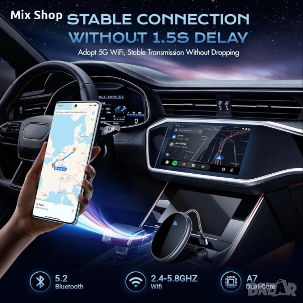 Интелигентно изживяване, подобрено качество на звука: Насладете се на силата на интелигентната свързаност, без да правите компромис с оригиналната аудио система на вашия автомобил. Нашият адаптер се интегрира безпроблемно с CarPlay и позволява достъп до навигация, музика, разговори, Siri/Voice Assistant и много други, всичко това с постоянно високото качество на звука, с което е известен вашият автомобил.