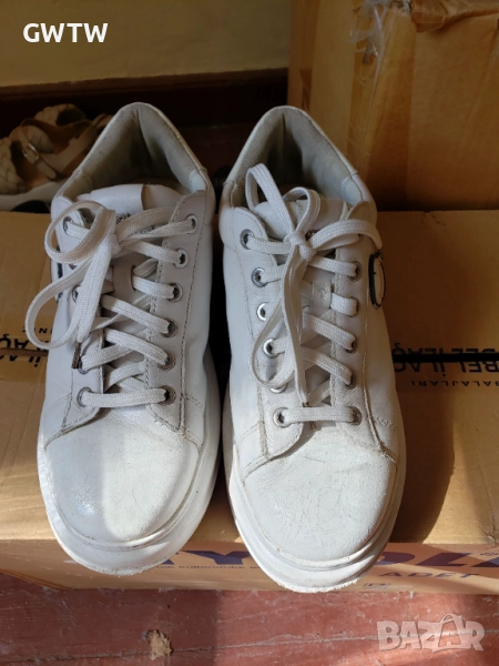 Karl Lagerfeld бели кецове естествена кожа. Без забележки. Състоянието се вижда на снимките. Стелка 24см.