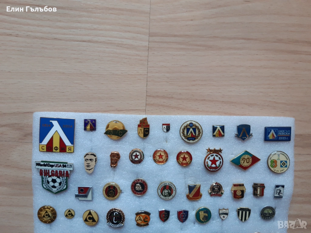 1.Значка на Левски.Значката е направена за 100 годишният юбилей на най-обичаният футболен отбор в България и извън пределите на страната и е от юбилейният СЕТ по повод на 80 годишнината от рождението на най-великият български футболист и голмайстор на Левски и бг националният отбор-Георги Аспарухов - Гунди.