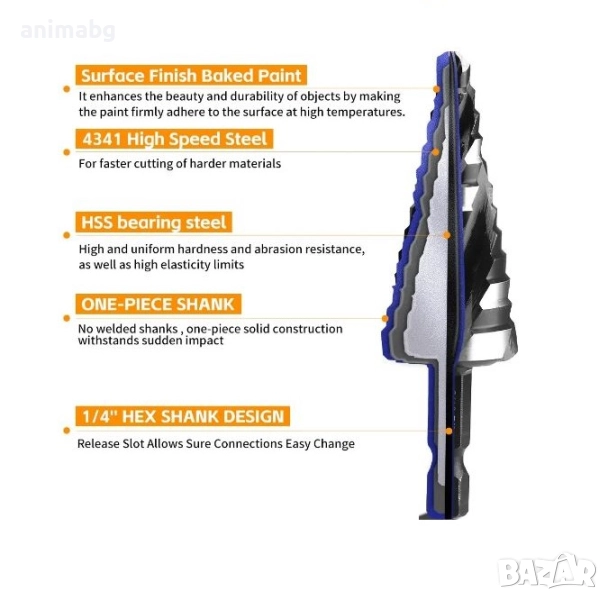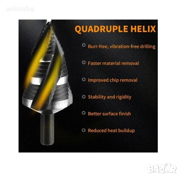 1. Тази стъпаловидна бормашина с индустриален клас е изработена от бързорежеща стомана за издръжливост и прецизност.