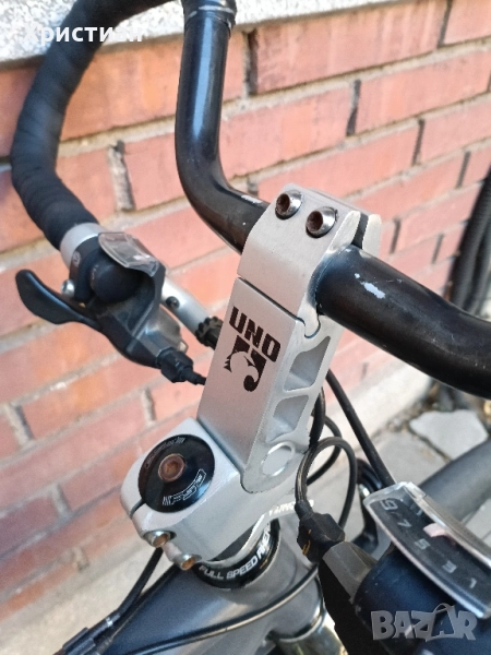 Алуминиева рамка с карбонова вилка .Хоризонтална тръба 53см,вертикална 51см. Тежи 11,5кг в този си вид .Намира се в София , за повече информация на лично или по телефона . На последната снимка се вижда забележката на рамката ,хоризонталната тръба е натисната транспортно . Забележката е предимно визуална.