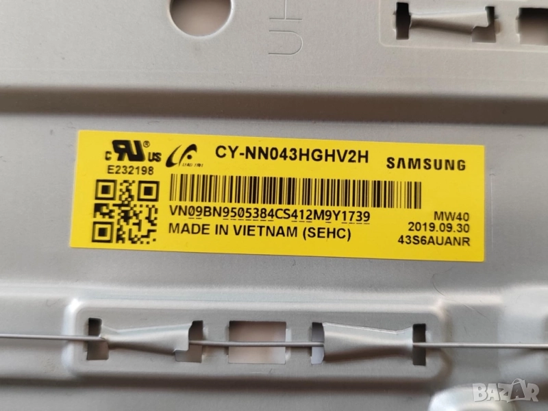 Panel: CY-NN043HGHV2H с чисто нова подсветка, перфектен светловод и дифузер БЕЗ нагоряло или напукано, които са съвместими с много телевизори от тази или сходни серии, а при тях най честия дефект е точно ТОВА!!! 100ЛВ. - ПРОДАДЕН.