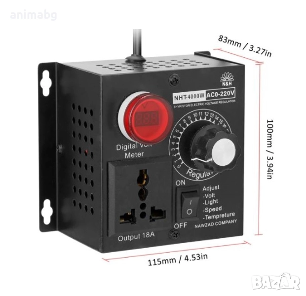 Мини размер, преносим и лек, висока мощност, лесен за употреба. Високомощен SCR регулатор на напрежение, безстепенно регулиране, помага за регулиране на скоростта, температурата, напрежението и светлината. Използва високотемпературна FR-4 платка, вносен SCR чип, изцяло алуминиеви термични ребра, прецизно съпротивление с високоволтов кондензатор. Отделно управление с превключватели, свободно управление на входната мощност и прекъсване на захранването. Без забавяне и отлагане, с верига за абсорбиране на пиковото напрежение.Външна обвивка с огнеупорна изолация, устойчива на високи температури, ръжда, високо налягане и с висока издръжливост. Използва многофункционални индустриални контакти, удебелени медни части, с фин контакт и безопасност. Дизайн на монтажните отвори с индивидуален дизайн, изборът на плоско място или окачване е по ваш избор. Тиха работа, пестене на енергия, стабилно шумоизолиране и широк спектър на приложение. Подходящ за електрически компоненти, като например: електрически печки, бойлери, лампи за топлопренос, малки двигатели, електрически запояващи устройства и др.