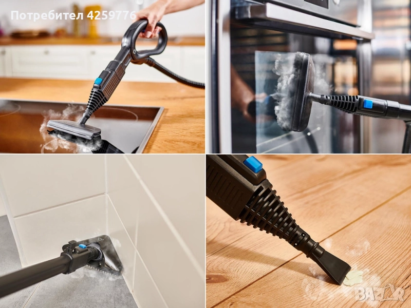 и дори почистване на прозорци.Разполага с мощна парна ютия.