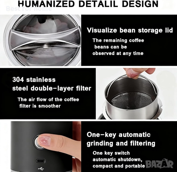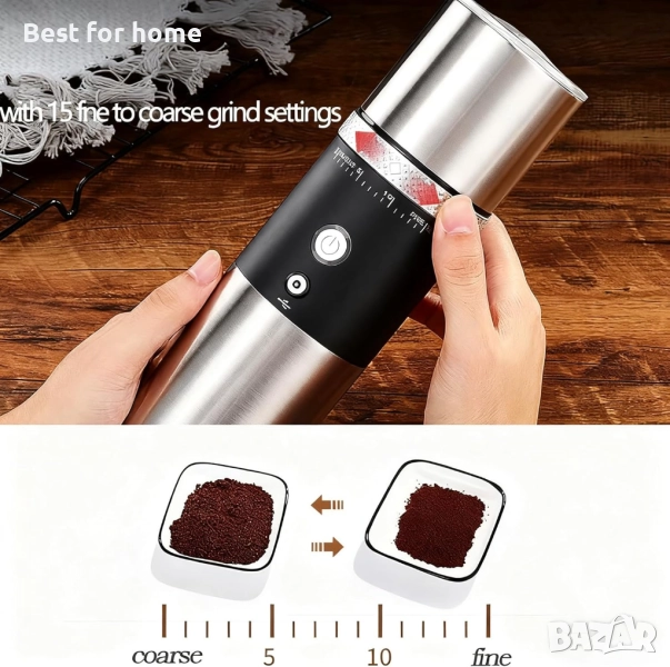 Електрическа, преносима, безжична, акумулаторна кафемелачка с 15 настройки за смилане