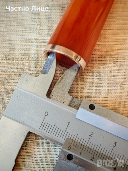 Изработен от истински кехлибар. Има надпис върху кутията - ECHT BERNSTEIN, което на немски означава истински кехлибар. Гривната в края на мундщука е сребърна позлатена и е изработена от сребро проба 800.