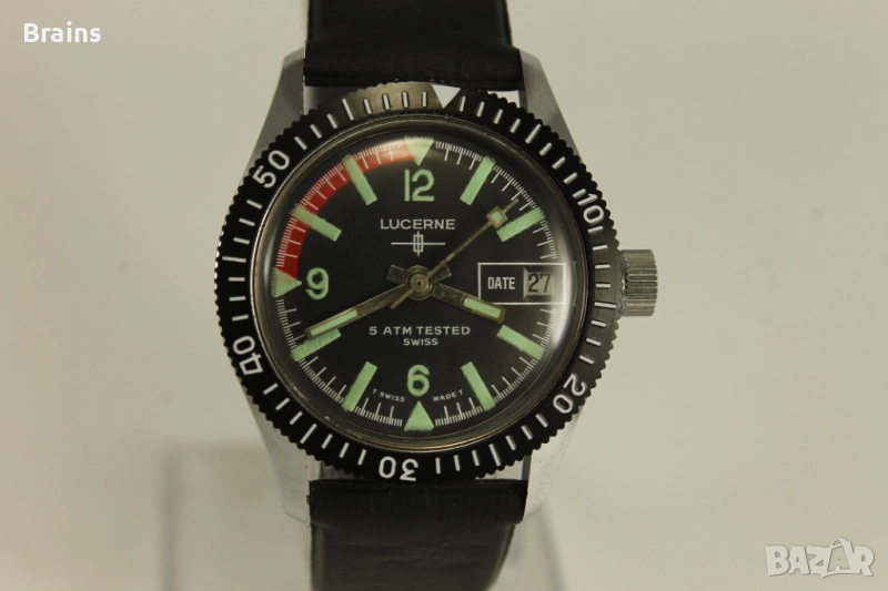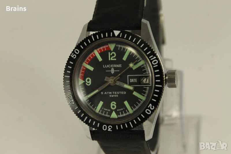 Нов неизползван Швейцарски дамски дайвърски часовник LUCERNE от 1960-те години. Часовника работи и прехвърля дата. Кайшката е оригинална. Идеален за всеки колекционер.