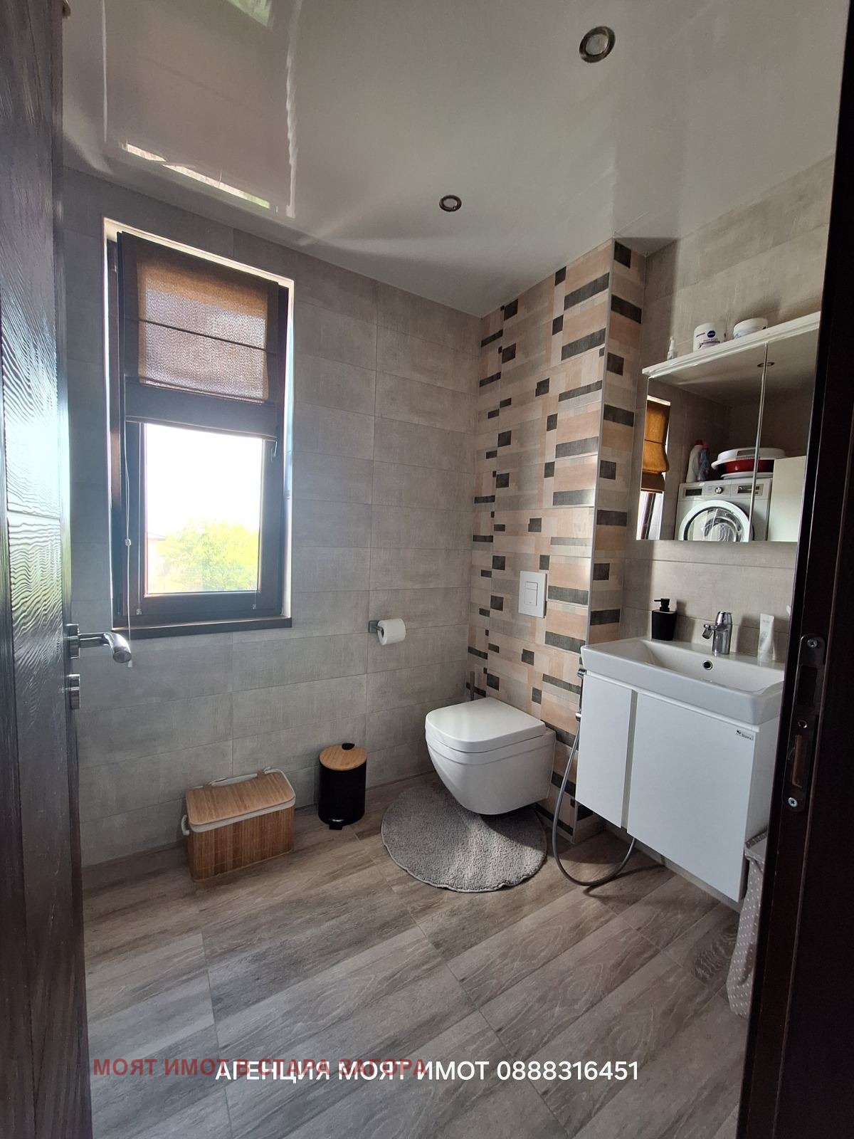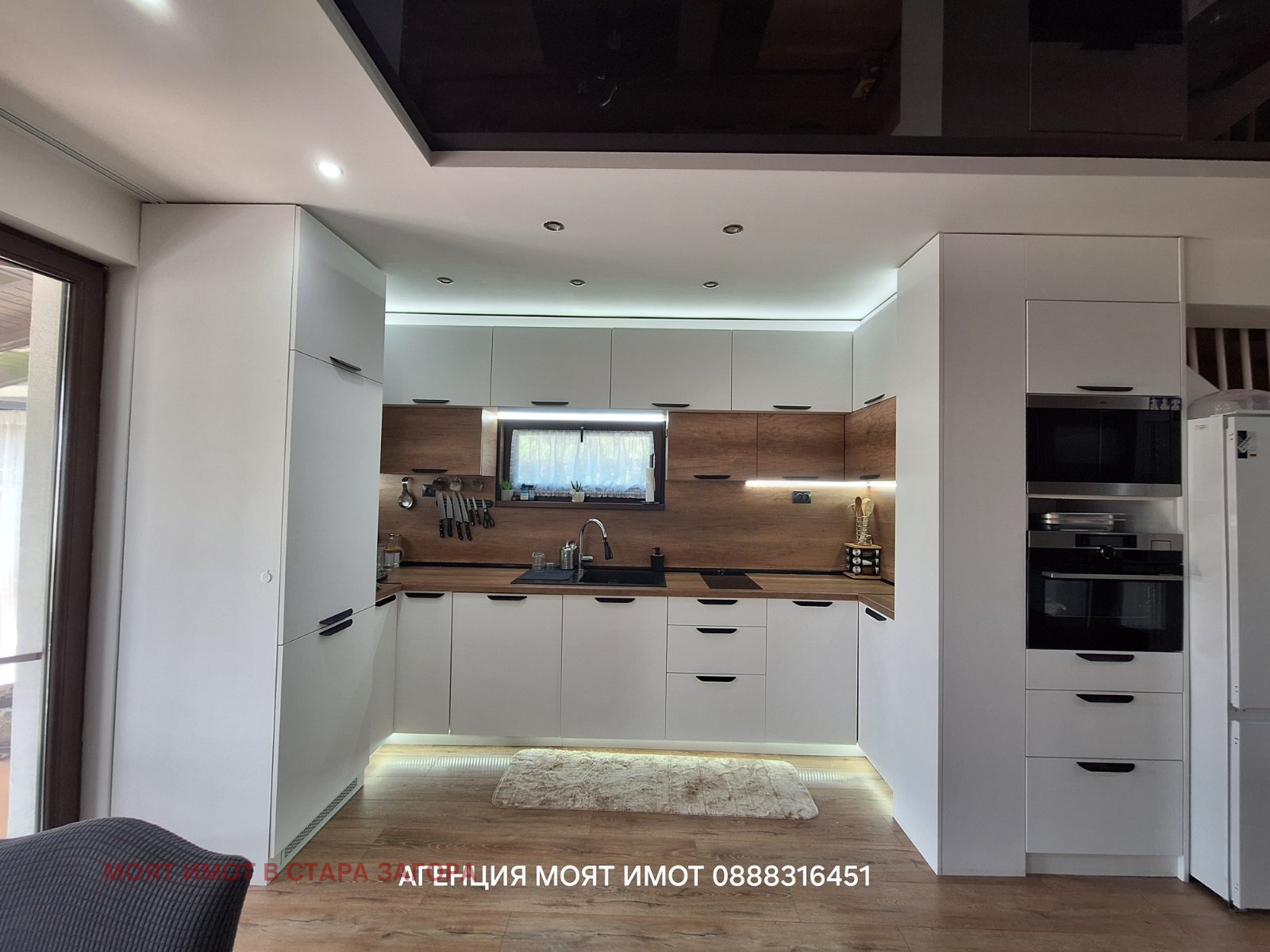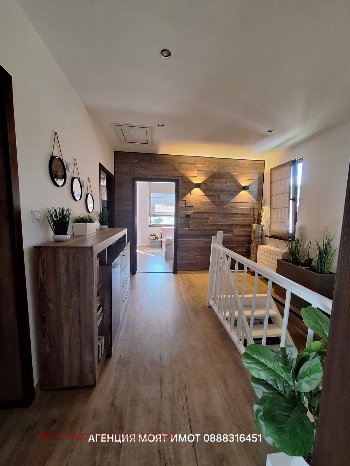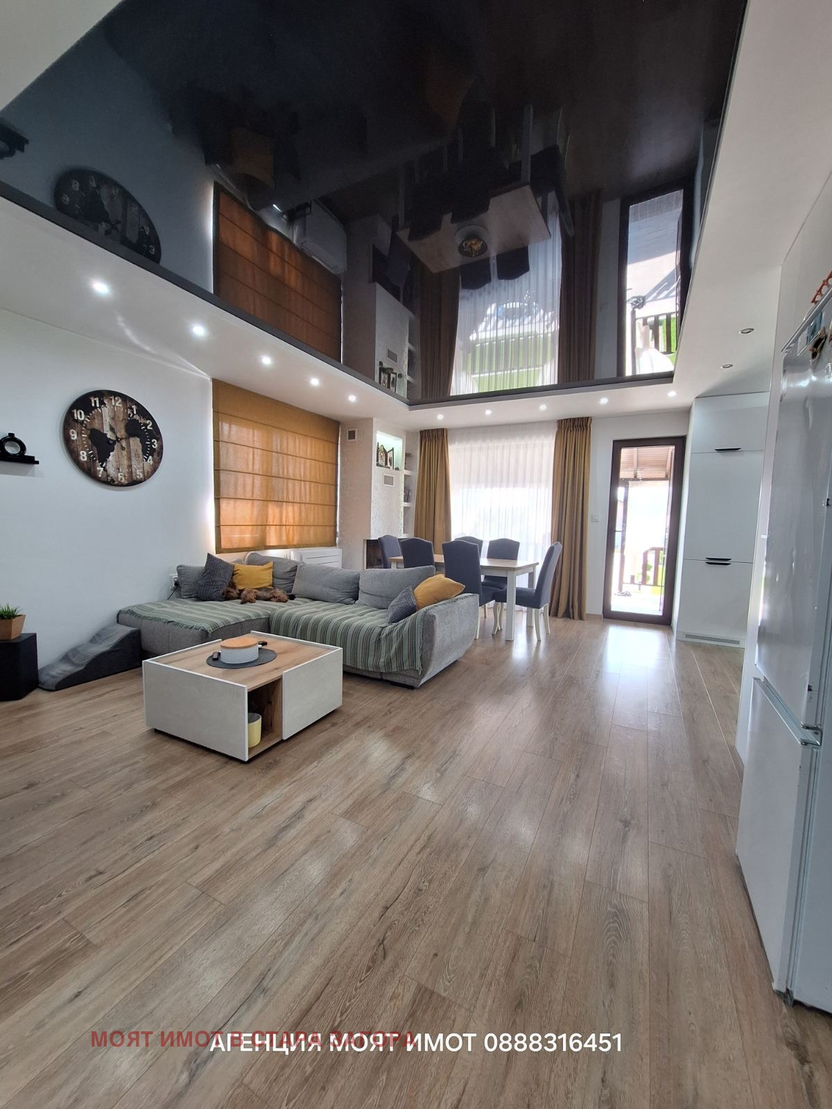 Имотът представлява двуетажна, напълно обзаведена и оборудвана къща, изпълнена с висококачествени материали, мебели и уреди.