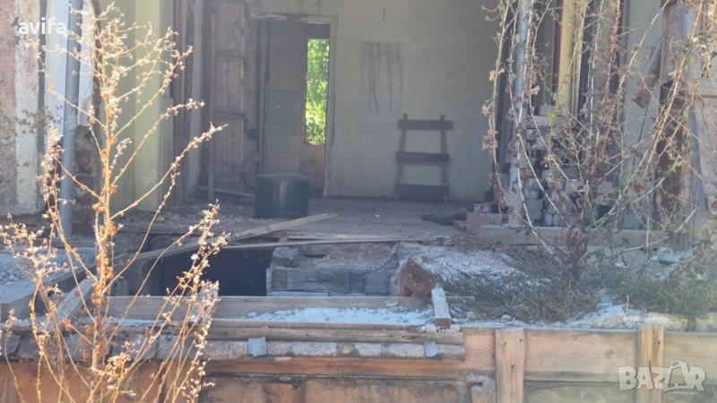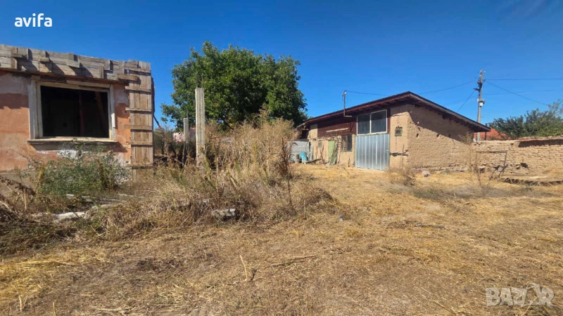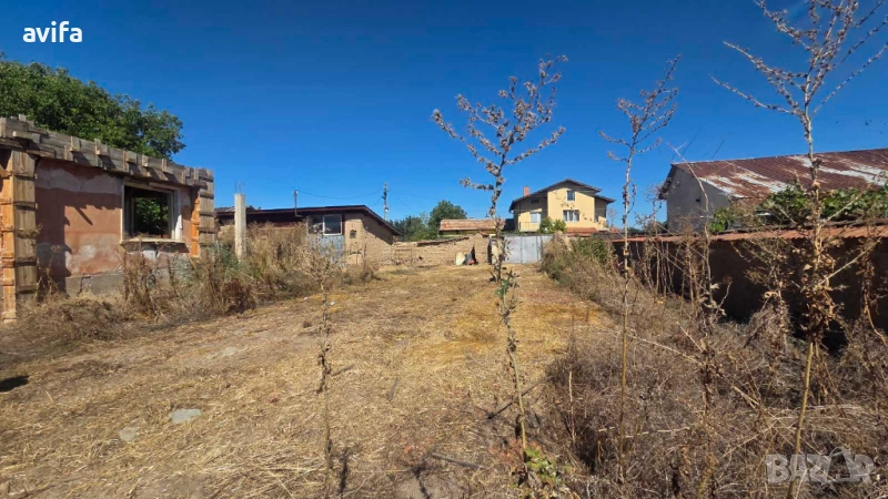 В момента е подготвена за укрепване и нов покрив.Състои се от голямо антре-хол, две стаи и кухня, има възможност за баня с тоалетна/в заснемането за търпимост я има/, отдолу има маза,а с ремонта на покрива може да се направи подпокривен етаж. Водата е в имота , има сонда и канализация, която има нужда от корекция. До едната постройка в двора също има вода и канал, с идеята за барбекю. Другата постройка е тип склад/може да се преустрои в гараж/. Дувара от едната страна не е изграден, за да се използва пространството докато се изолира и ремонтира къщата.