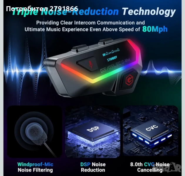 - 🎵🎶【𝐇𝐢𝐅𝐢 𝐒𝐭𝐞𝐫𝐞𝐨 𝐒𝐨𝐮𝐧𝐝 & 𝐁𝐫𝐞𝐚𝐭𝐡𝐭𝐚𝐤𝐢𝐧𝐠 𝐁𝐚𝐬𝐬】Мотоциклетните Bluetooth слушалки Gmax предлагат HiFi 3D звукови ефекти и невероятен бас. Използват професионални техники за обработка и настройка на аудиото, за да осигурят 3D, естествено и балансирано качество на звука. С интелигентна DSP и CVC технология за шумопотискане, мотоциклетистите могат да се насладят на завладяващо съраунд звуково изживяване с живи високи честоти и дълбок, мощен бас, дори при скорост от 80 мили в час! Насладете се на пътуването си максимално!