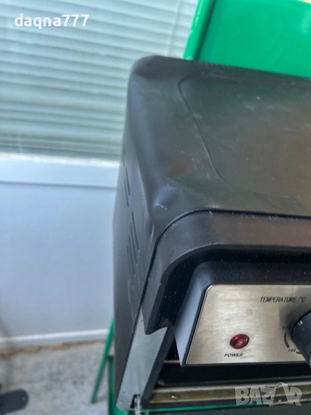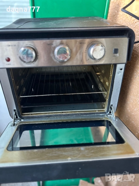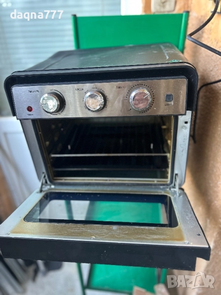 Характеристики: Регулируем термостат (90-230°C), 60-минутен таймер с автоматично изключване (и функция за постоянно включено), термоустойчива стъклена врата