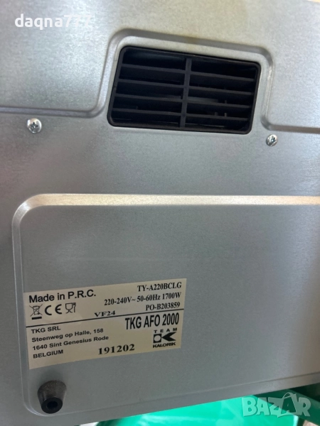 Team Kalorik TKG AFO 2000, производител Белгия, който е многофункционален уред, съчетаващ мини фурна, фритюрник с горещ въздух и дехидратор.
