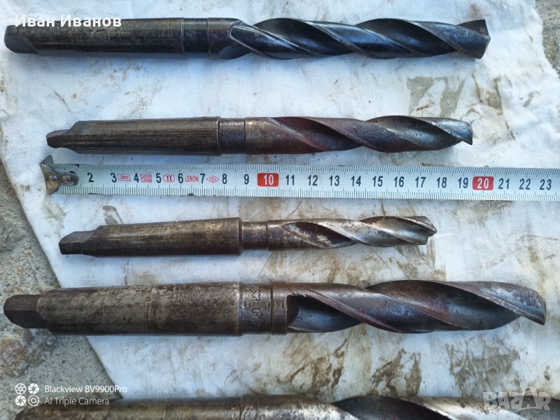 Продавам стари български и руски свредла за метал с конусен захват за бормашина/струг/фреза със следните размери: