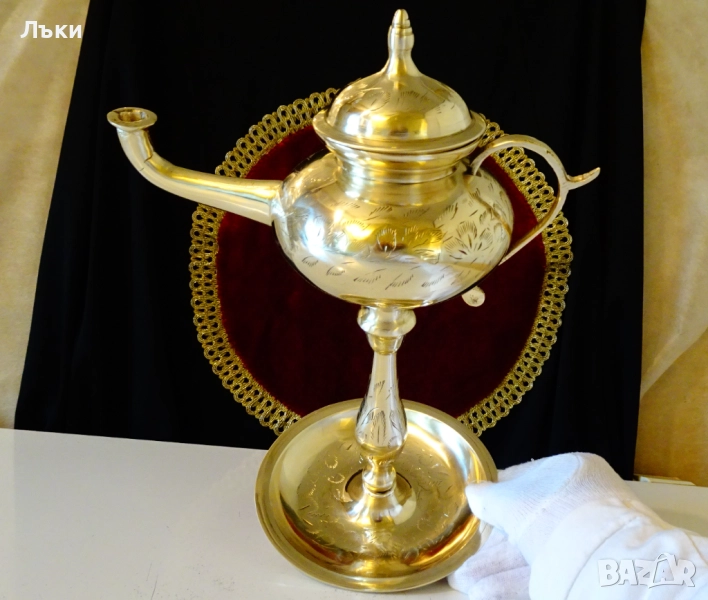 Старинна маслена лампа,лампата на Аладин,майсторска ръчна
