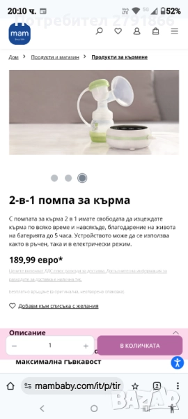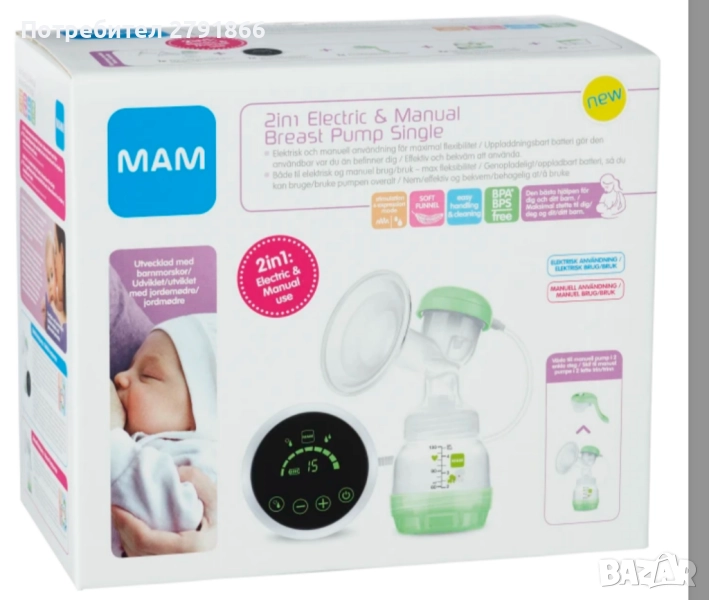 MAM 2-в-1 Електрическа и механична помпа за кърма, стартов комплект за новородено НОВ