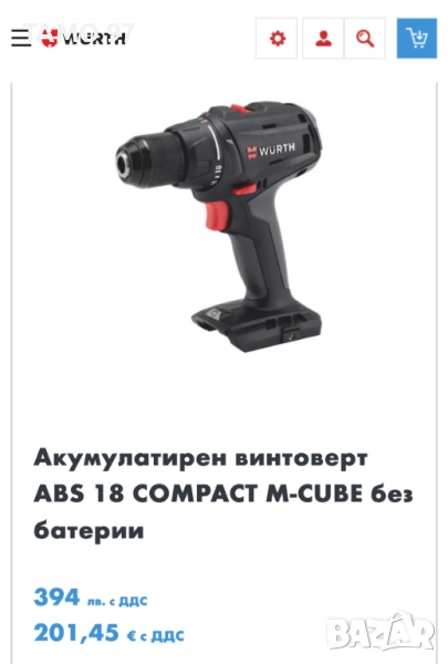 Продавам акумулаторен безчетков винтоверт на Вюрт в отлично визуално състояние и работи перфектно. Машината е използвана малко, внос от Франция. Обявената цена е за само машината без батерии и зарядно. Пращаме с опция преглед и тест с куриерска фирма еконт може и лично предаване за гр. Шумен.