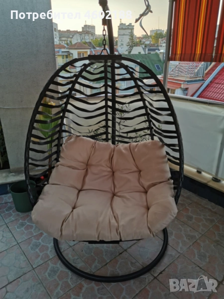 Почти неизползвана. Градинската люлка е изработена със стабилна и здрава конструкция от специален текстилов материал и метал. Има масивни меки възглавници за оптимален комфорт. Компактна и лесно преносима, може да се постави в градината или на терасата. Люлката е уникално предложение за кът за отмора и релакс. Състои се от стабилна метална стойка, на която се закача люлката, наподобяваща уютно гнездо. Допълнителните меки възглавници и калъвка с (с цип, могат да се свалят и перат) още повече предразполагат към пълноценна и възстановяваща почивка. Люлката е модел 2023 година.