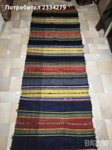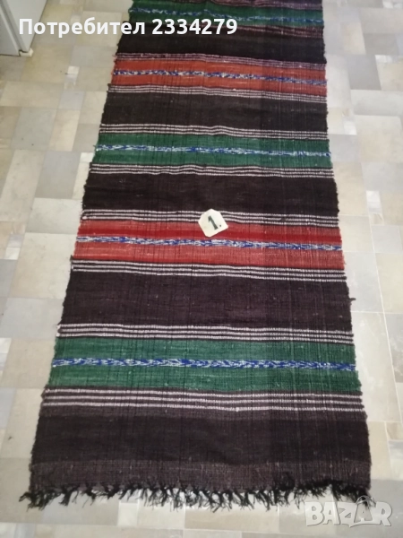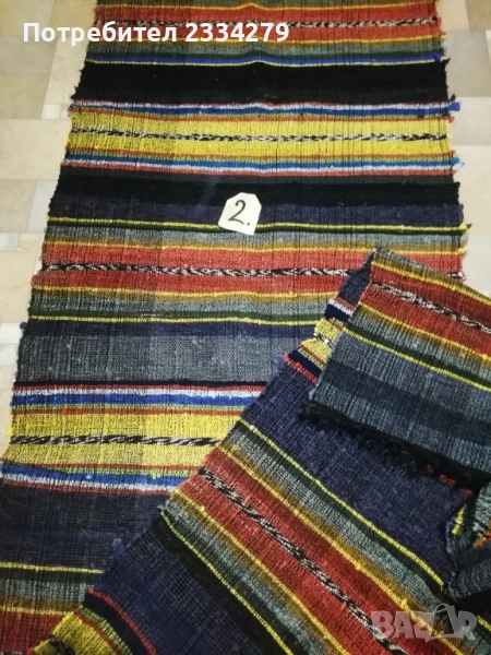 Два броя ръчно тъкани черги, пътеки, майсторска изработка тъкани на дървен стан с пърцалени нишки,красиви естествени шарени цветове, размери: N:1 дължина 3м., широчина 80см.; N:2 размери 3м.50см., широчина 80см., цена за брой 18€. Много добре запазени подходящи за битова стая, механа, заведение.