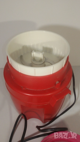 Не знам за кафе или нещо друго е. По-голяма е от стандартна стара кафемелачка. Не знам колко вата е.