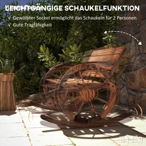 Стилен и рустик дизайн: Тази люлка Outsunny се отличава с впечатляващ дизайн с подлакътници във формата на колела, което я прави характерно допълнение към всяка градина или вътрешен двор. Придайте на вашето външно пространство уникална фокусна точка, която ще привлече вниманието на всички.