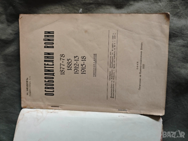 Освободителни войни 1877-1878, 1885, 1912-1913, 1915-1918 Генерал Никола Недев Две издания : 1929 г. ,238 стр. облечена с хартия ,подис , първите и последните страници доста захабени но в по голямата си част добре запазена 1937 година, изданието е много добре запазено 220 стр.