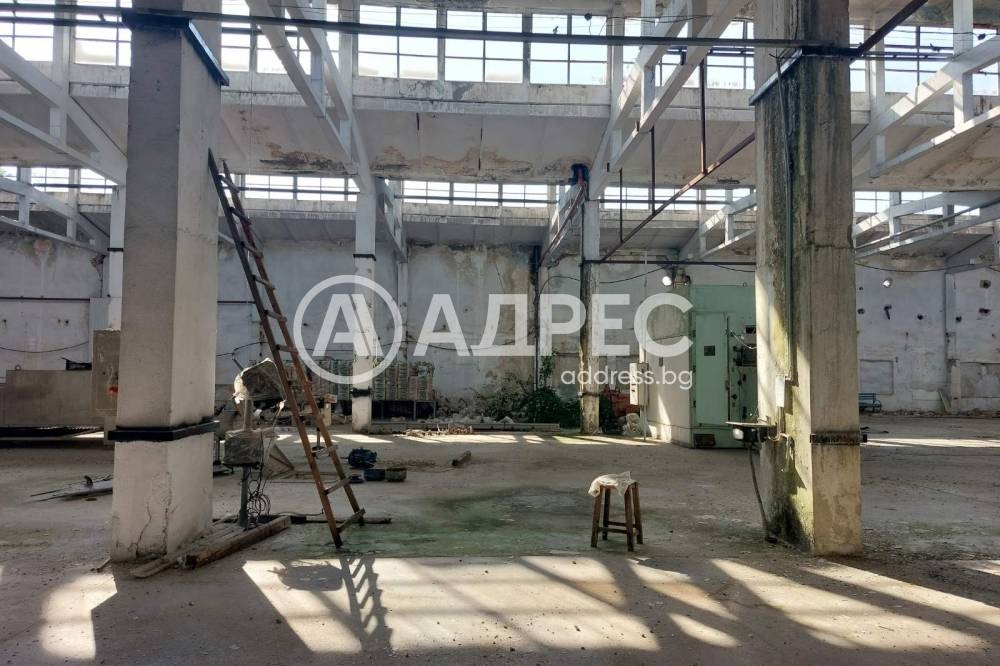 Предлагаме на Вашето внимание хале с прилежаща открита складова площ със самостоятелен портал с обща квадратура 8600кв.м и височина 8м в най-високата си част Подът е шлайфан бетон, изградена и работеша пожарогасителна система, самостоятелен водоизточник, трафопост с ел мощност-360 KW Халето разполага със складова част, офис с тоалетна и баня, стая за почивка, мъжка и женска баня и тоалетна Има изградени три рампи за товаро-разтоварна дейност
