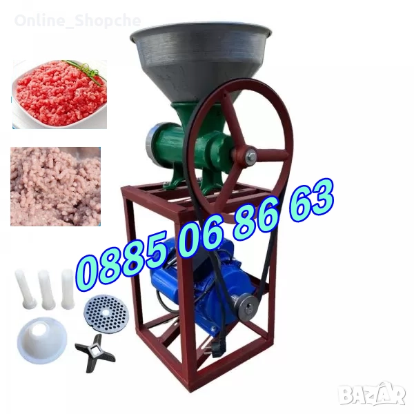 Чугунена Месомелачка №32 с мотор и стойка + метална фуния
