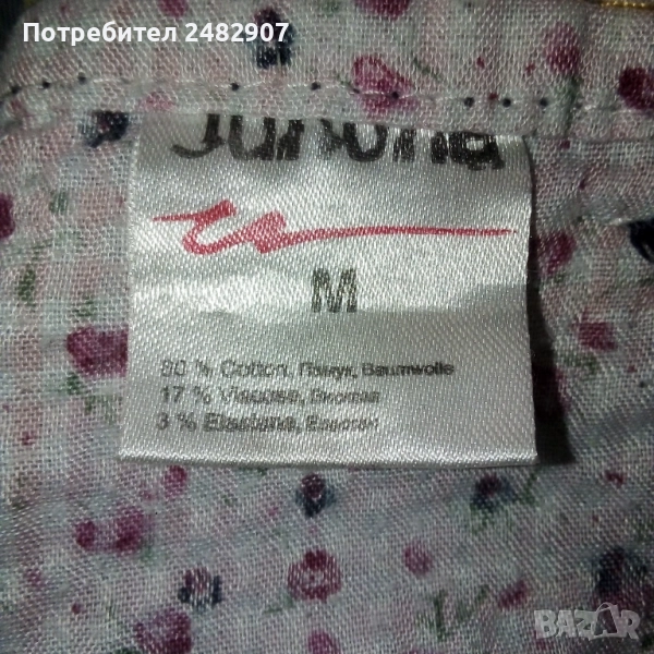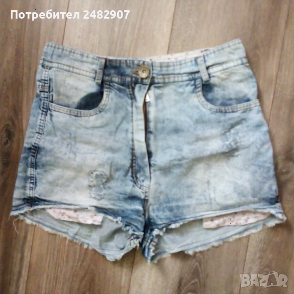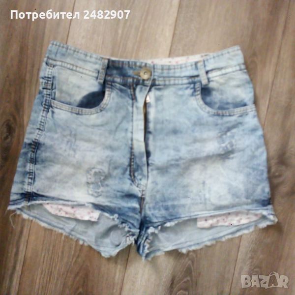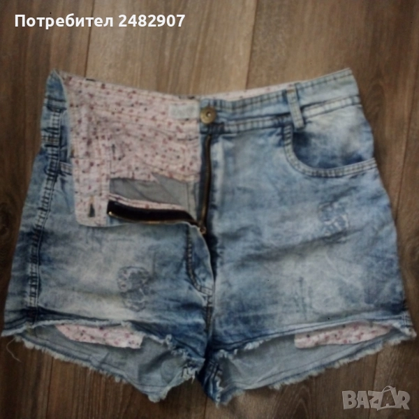 Къси дамски панталони, размер М. Съдържат 80 % памук, 17 % вискоза и 3 % еластан. Ширина в талията - 37 см, дължина от талията до чатала - 30 см, дължина от талията до долу - 32 см, ширина на крачола в долната част - 29 см. Много запазени, почти не са използвани.