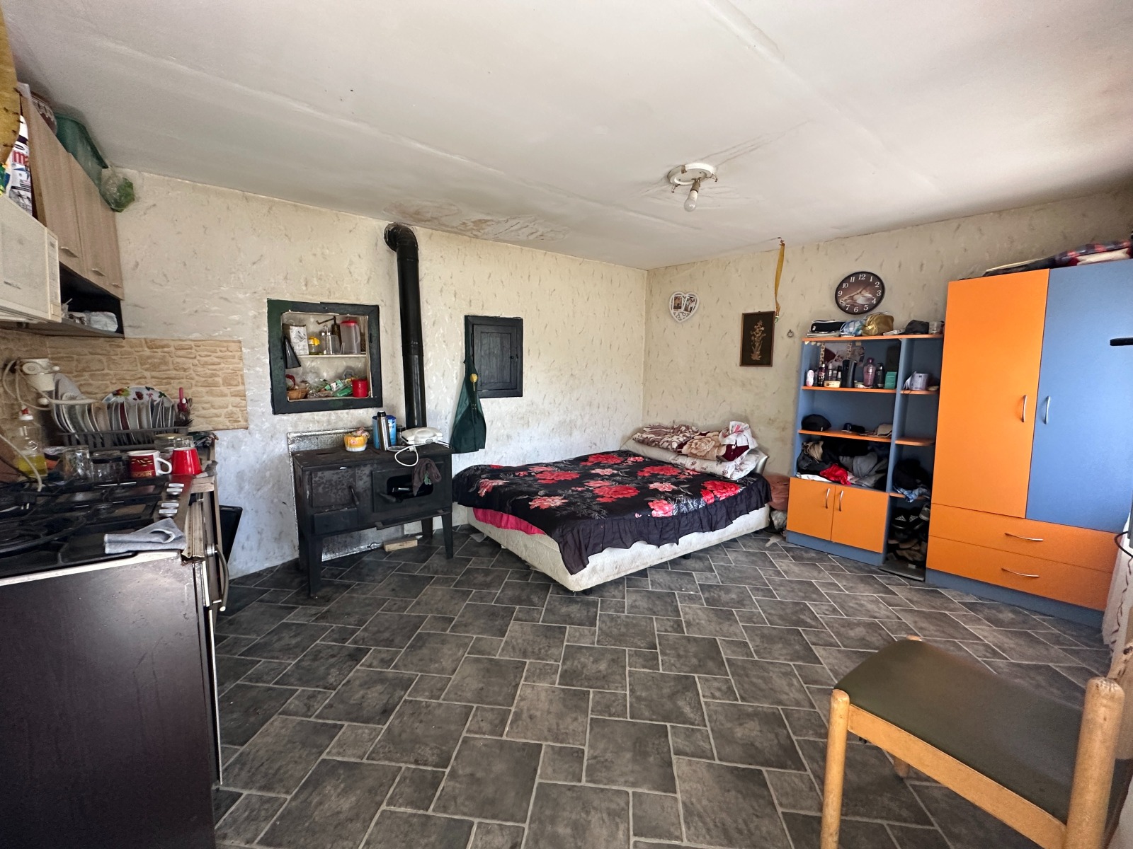 Къща в село Ивански (керпич с гредоред) до парка. Имотът е с площ от 74 кв.м, разпределен на: две спални, Хол с кухня.
