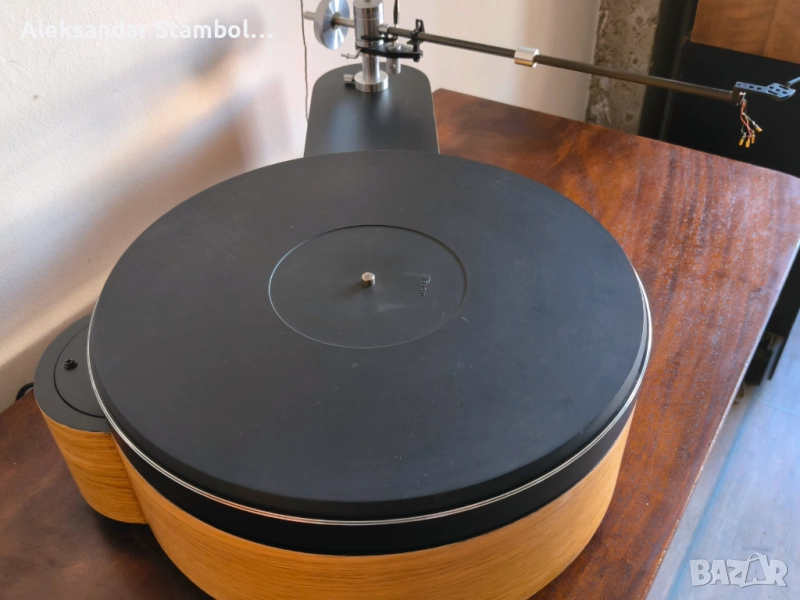 Рамо - Mayware "Formula V", uni pivot с резервоар за силиконово масло и възможност за различна степен на демпване. Рамото има възможност за промяна на ефективната маса, в зависимост от къмплайънса на използваната доза. Ръчно преработено с карбонов армтюб на 12" ефективна дължина, като всички функции са запазени, а тракинг грешката и скейтинга са сведени до минимум.