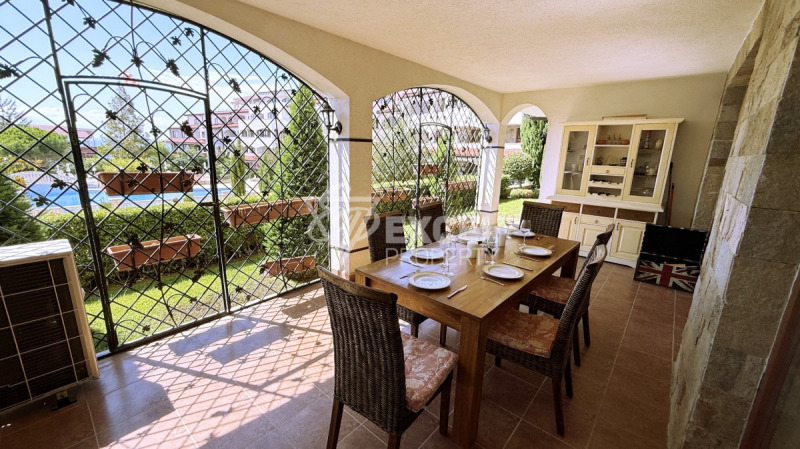 Две широки веранди с излаз към градина с барбекю, ТВ зона, маса за хранене, люлка, наргиле