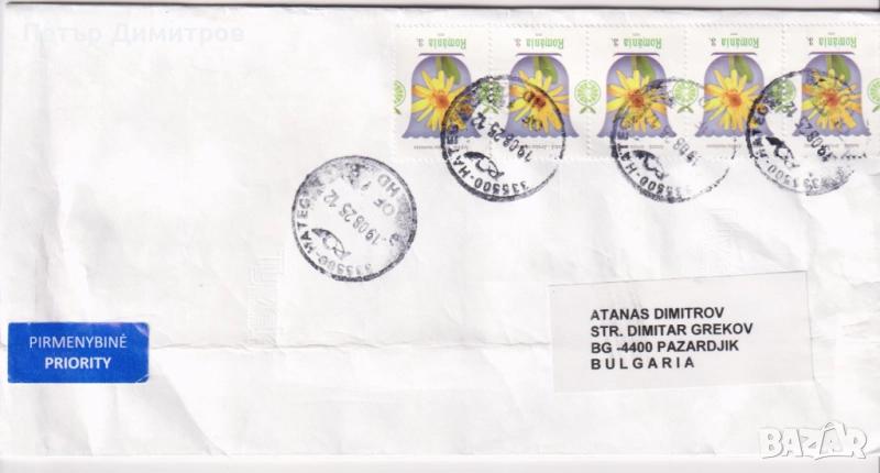 Пътувал плик марка Цвете 2023 от Румъния.