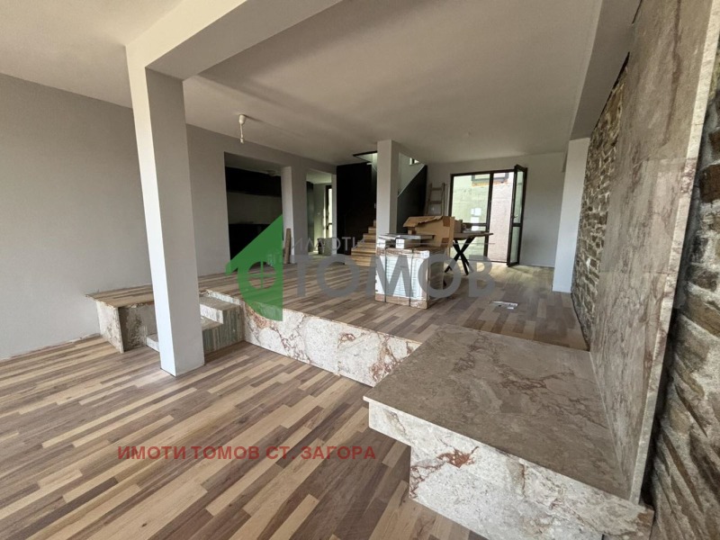 Имоти Томов Стара Загора представя на Вашето внимание прекрасна двуетажна къща с разгърната застроена площ от 360 кв.м., разположена върху собствен двор от 380 кв.м. само на минутка от града, но с усещане за спокойствие, тишина и природа.