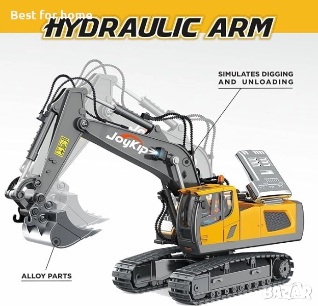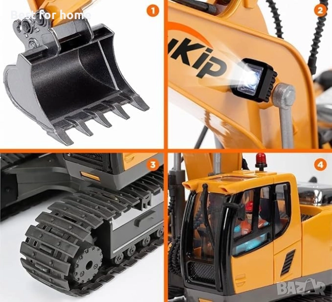 Алуминиеви части: Играчката багер-трактор с дистанционно управление е изработена от издръжливи и здрави метални и алуминиеви части за повишена здравина и реалистичен външен вид. Радиоуправляемият багер-трактор ще ви осигури часове забавление - чудесно допълнение към вашия багер и
